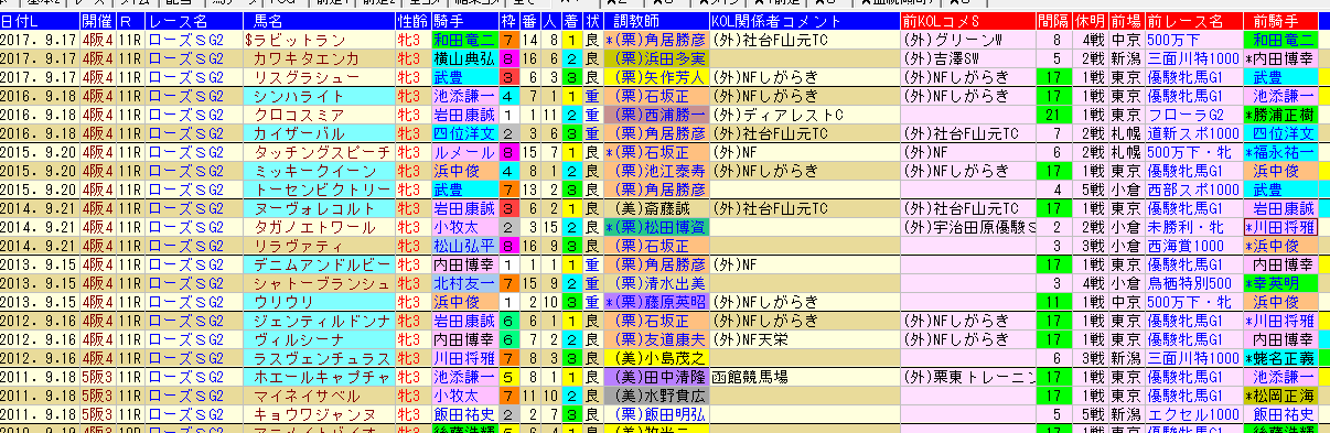 とりあえず ローズSの予想スケルトンはここまでです。